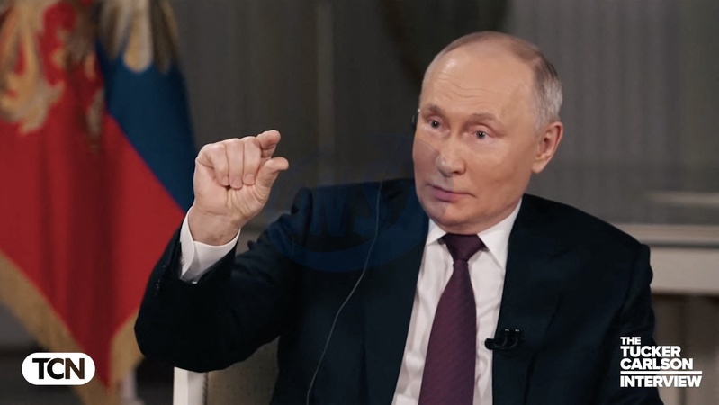 Pictures MUST credit: Tucker Carlson Network US journalist Tucker Carlson interviews Russian president Vladimir Putin at the Kremlin in Moscow on February 6, 2024 with the interview broadcast on February 8. Picture supplied by JLPPA