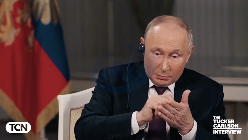 Pictures MUST credit: Tucker Carlson Network US journalist Tucker Carlson interviews Russian president Vladimir Putin at the Kremlin in Moscow on February 6, 2024 with the interview broadcast on February 8. Picture supplied by JLPPA