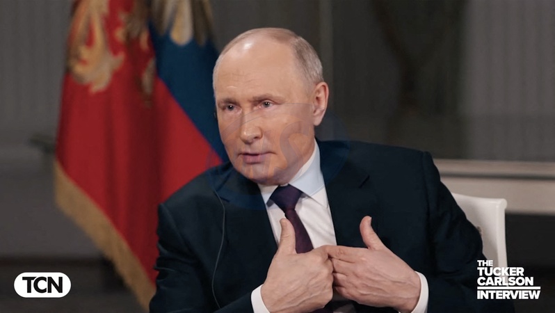 Pictures MUST credit: Tucker Carlson Network US journalist Tucker Carlson interviews Russian president Vladimir Putin at the Kremlin in Moscow on February 6, 2024 with the interview broadcast on February 8. Picture supplied by JLPPA