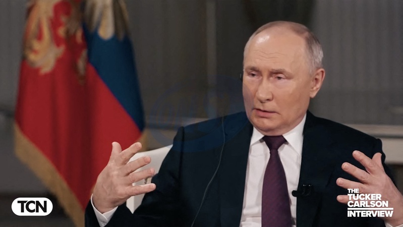 Pictures MUST credit: Tucker Carlson Network US journalist Tucker Carlson interviews Russian president Vladimir Putin at the Kremlin in Moscow on February 6, 2024 with the interview broadcast on February 8. Picture supplied by JLPPA