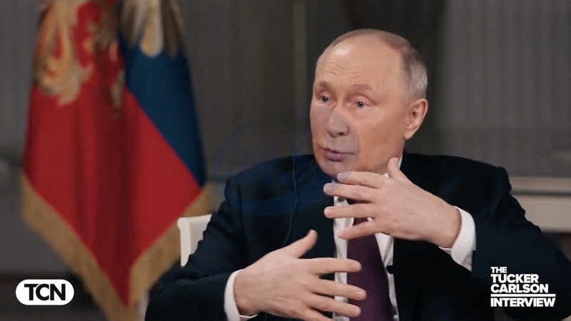 Pictures MUST credit: Tucker Carlson Network US journalist Tucker Carlson interviews Russian president Vladimir Putin at the Kremlin in Moscow on February 6, 2024 with the interview broadcast on February 8. Picture supplied by JLPPA
