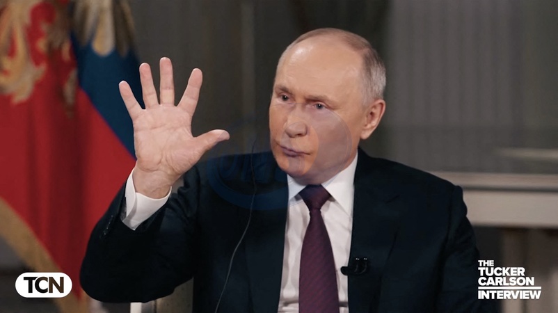 Pictures MUST credit: Tucker Carlson Network US journalist Tucker Carlson interviews Russian president Vladimir Putin at the Kremlin in Moscow on February 6, 2024 with the interview broadcast on February 8. Picture supplied by JLPPA