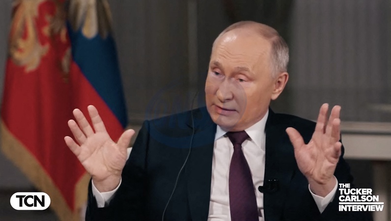 Pictures MUST credit: Tucker Carlson Network US journalist Tucker Carlson interviews Russian president Vladimir Putin at the Kremlin in Moscow on February 6, 2024 with the interview broadcast on February 8. Picture supplied by JLPPA