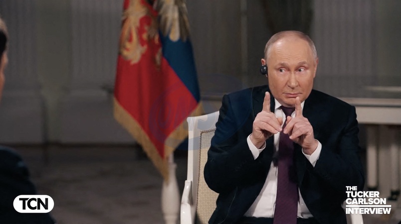 Pictures MUST credit: Tucker Carlson Network US journalist Tucker Carlson interviews Russian president Vladimir Putin at the Kremlin in Moscow on February 6, 2024 with the interview broadcast on February 8. Picture supplied by JLPPA