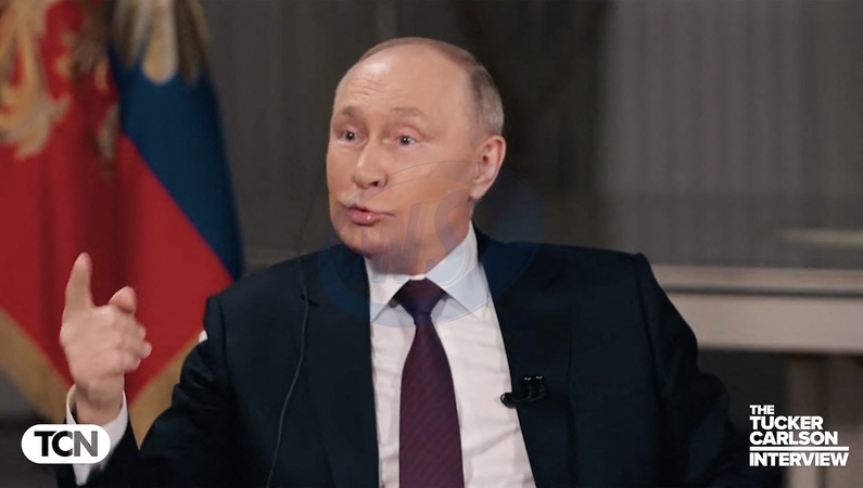 Pictures MUST credit: Tucker Carlson Network US journalist Tucker Carlson interviews Russian president Vladimir Putin at the Kremlin in Moscow on February 6, 2024 with the interview broadcast on February 8. Picture supplied by JLPPA