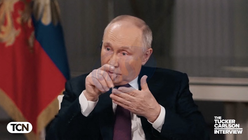 Pictures MUST credit: Tucker Carlson Network US journalist Tucker Carlson interviews Russian president Vladimir Putin at the Kremlin in Moscow on February 6, 2024 with the interview broadcast on February 8. Picture supplied by JLPPA