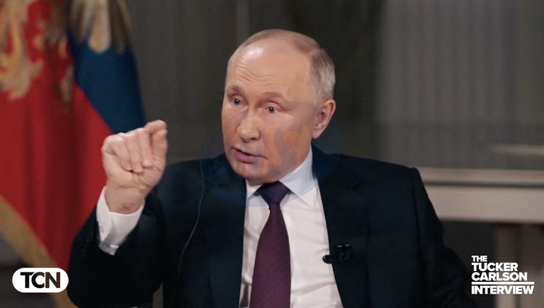 Pictures MUST credit: Tucker Carlson Network US journalist Tucker Carlson interviews Russian president Vladimir Putin at the Kremlin in Moscow on February 6, 2024 with the interview broadcast on February 8. Picture supplied by JLPPA