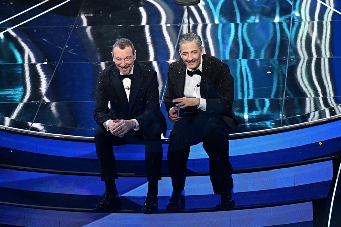 Fiorelllo, Amadeus during the day 5 of 74th Sanremo Music Festival 2024, Italy - 10 Feb 2024, Credit:Maria Laura Antonelli / Avalon