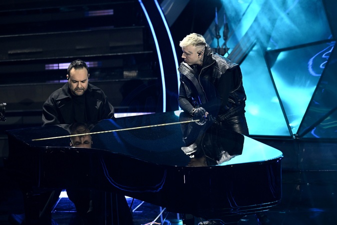 Lazza, Aleksander Zielinski during the day 5 of 74th Sanremo Music Festival 2024, Italy - 10 Feb 2024, Credit:Maria Laura Antonelli / Avalon