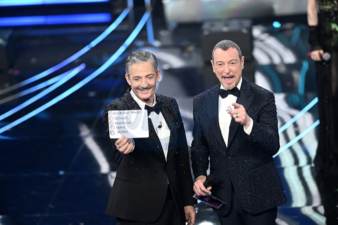 Amadeus, Fiorello during the day 5 of 74th Sanremo Music Festival 2024, Italy - 10 Feb 2024, Credit:Maria Laura Antonelli / Avalon