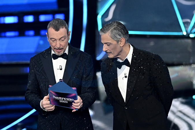 Fiorelllo, Amadeus during the day 5 of 74th Sanremo Music Festival 2024, Italy - 10 Feb 2024, Credit:Maria Laura Antonelli / Avalon