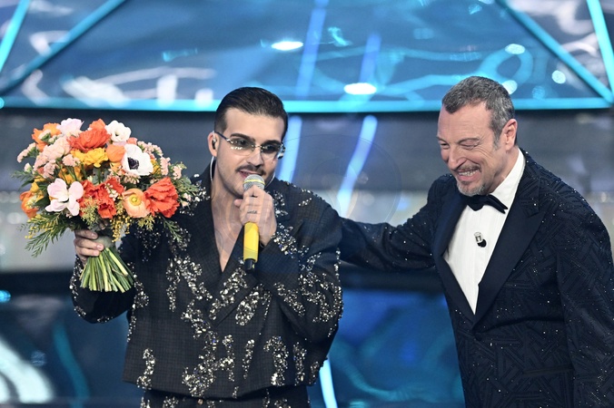 Geolier, Amadeus during the day 5 of 74th Sanremo Music Festival 2024, Italy - 10 Feb 2024, Credit:Maria Laura Antonelli / Avalon