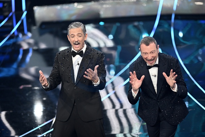 Fiorello, Amadeus during the day 5 of 74th Sanremo Music Festival 2024, Italy - 10 Feb 2024, Credit:Maria Laura Antonelli / Avalon