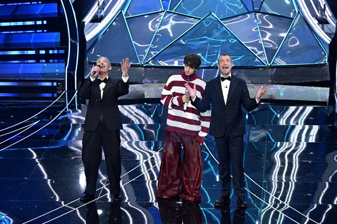 Fiorello, Amadeus, Sangiovanni during the day 5 of 74th Sanremo Music Festival 2024, Italy - 10 Feb 2024, Credit:Maria Laura Antonelli / Avalon