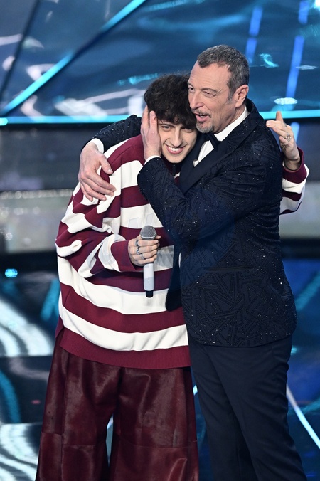 Amadeus, Sangiovanni during the day 5 of 74th Sanremo Music Festival 2024, Italy - 10 Feb 2024, Credit:Maria Laura Antonelli / Avalon