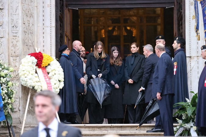 Les princesses Luisa et Vittoria de Savoie avec leur mère, la princesse Clotilde Courau de Savoie - Sorties des funérailles du prince Victor Emmanuel de Savoie en la cathédrale Saint-Jean-Baptiste de Turin le 10 février 2024. © Dominique Jacovides/Bestimage Exits from the funeral of Prince Victor Emmanuel of Savoy in the Cathedral of Saint John the Baptist in Turin on February 10, 2024.