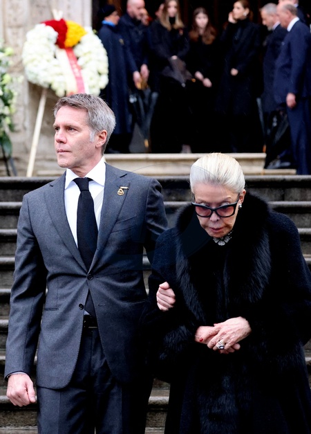 Le prince Emmanuel-Philibert de Savoie et sa mère Marina Ricolfi-Doria - Sorties des funérailles du prince Victor Emmanuel de Savoie en la cathédrale Saint-Jean-Baptiste de Turin le 10 février 2024. © Dominique Jacovides/Bestimage Exits from the funeral of Prince Victor Emmanuel of Savoy in the Cathedral of Saint John the Baptist in Turin on February 10, 2024.