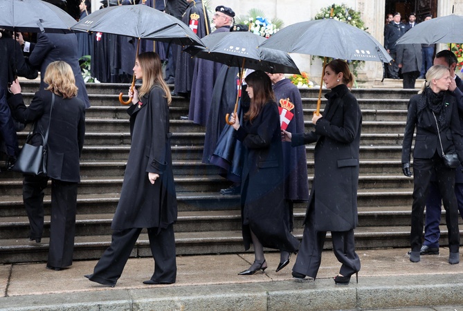Les princesses Luisa et Vittoria de Savoie avec leur mère, la princesse Clotilde Courau de Savoie - Les funérailles du prince Victor Emmanuel de Savoie, fils du dernier roi d'Italie, en la cathédrale Saint-Jean-Baptiste de Turin, le 10 février 2004. © Dominique Jacovides/Bestimage The funeral of prince Victor Emmanuel of Savoy, son of the last king of Italy, in the Cathedral of Saint John the Baptist in Turin, February 10, 2004.