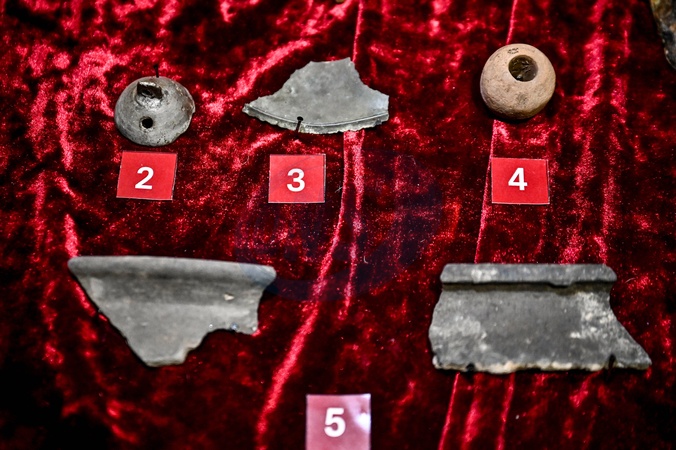 ZAPORIZHZHIA, UKRAINE - FEBRUARY 09, 2024 - Archaeological finds discovered after the shallowing of the Kakhovka Reservoir as a result of the dam explosion by Russian troops, exhibited at the museum of the Khortytsia National Reserve, Zaporizhzhia, south-eastern Ukraine., Credit:Dmytro Smolienko / Avalon