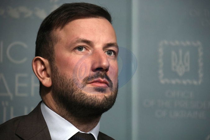 KYIV, UKRAINE - FEBRUARY 09, 2024 - European Union Commissioner for Environment, Oceans and Fisheries Virginijus Sinkevicius speaks during the meeting with Head of the Office of the President of Ukraine Andrii Yermak and media representatives with the participation of members of the International Working Group on the Environmental Consequences of War, Kyiv, capital of Ukraine., Credit:Eugen Kotenko / Avalon