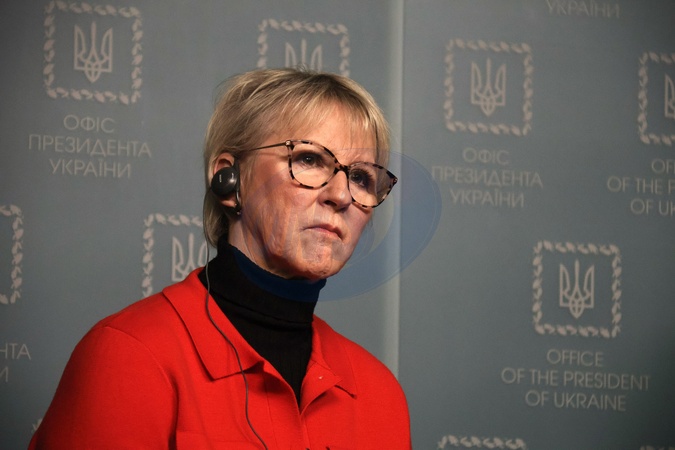 KYIV, UKRAINE - FEBRUARY 09, 2024 - Swedish Minister for Foreign Affairs (2014-2019) Margot Wallstrom is seen during the meeting with Head of the Office of the President of Ukraine Andrii Yermak and media representatives with the participation of members of the International Working Group on the Environmental Consequences of War, Kyiv, capital of Ukraine., Credit:Eugen Kotenko / Avalon