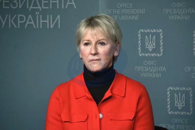 KYIV, UKRAINE - FEBRUARY 09, 2024 - Swedish Minister for Foreign Affairs (2014-2019) Margot Wallstrom is seen during the meeting with Head of the Office of the President of Ukraine Andrii Yermak and media representatives with the participation of members of the International Working Group on the Environmental Consequences of War, Kyiv, capital of Ukraine., Credit:Eugen Kotenko / Avalon