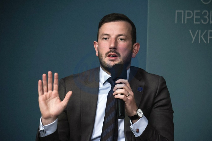 KYIV, UKRAINE - FEBRUARY 09, 2024 - European Union Commissioner for Environment, Oceans and Fisheries Virginijus Sinkevicius speaks during the meeting with Head of the Office of the President of Ukraine Andrii Yermak and media representatives with the participation of members of the International Working Group on the Environmental Consequences of War, Kyiv, capital of Ukraine., Credit:Eugen Kotenko / Avalon