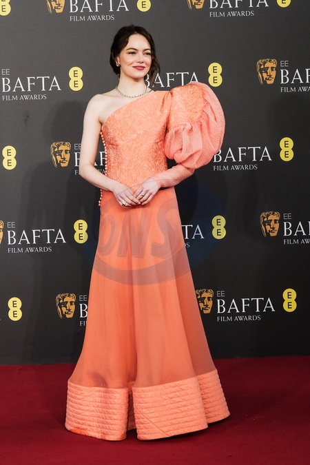 Emma Stone arriving at the 2024 EE BAFTA Film Awards on Sunday 18 February 2024 at Royal Festival Hall, London. ., Credit:Julie Edwards / Avalon