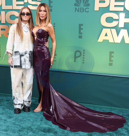 SANTA MONICA, LOS ANGELES, CALIFORNIA, USA - FEBRUARY 18: G Flip and wife Chrishell Stause arrive at the 49th Annual People's Choice Awards 2024 held at The Barker Hangar on February 18, 2024 in Santa Monica, Los Angeles, California, United States., Credit:Xavier Collin / Avalon