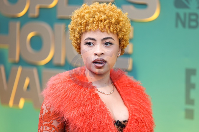 SANTA MONICA, LOS ANGELES, CALIFORNIA, USA - FEBRUARY 18: Ice Spice wearing custom Dolce and Gabbana and Levian jewels arrives at the 49th Annual People's Choice Awards 2024 held at The Barker Hangar on February 18, 2024 in Santa Monica, Los Angeles, California, United States., Credit:Xavier Collin / Avalon