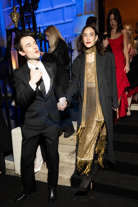 Alexa Chung et son compagnon Tom Sturridge à la sortie de la soirée British Vogue et Tiffany & Co. "Celebrate Fashion and Film Party 2024" chez Annabel à Londres