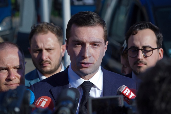 Le président du Rassemblement national (RN) Jordan Bardella visite le poste frontière de Saint-Ludovic à Menton