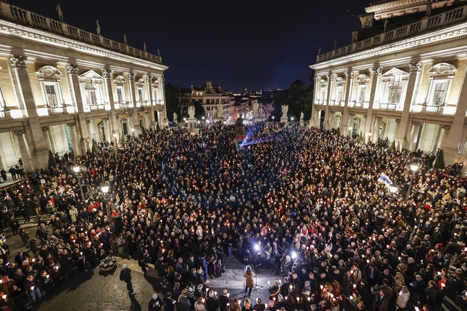 Procesja z pochodniami ku pamięci przywódcy rosyjskiej opozycji Aleksieja Nawalnego w Rzymie, Włochy – 19 lutego 2024 r.