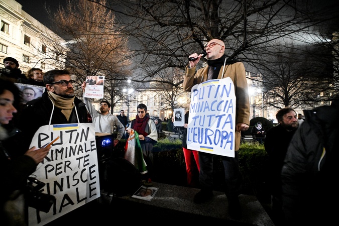 wiec ku pamięci przywódcy rosyjskiej opozycji Aleksieja Nawalnego w Mediolanie, Włochy – 19 lutego 2024 r.