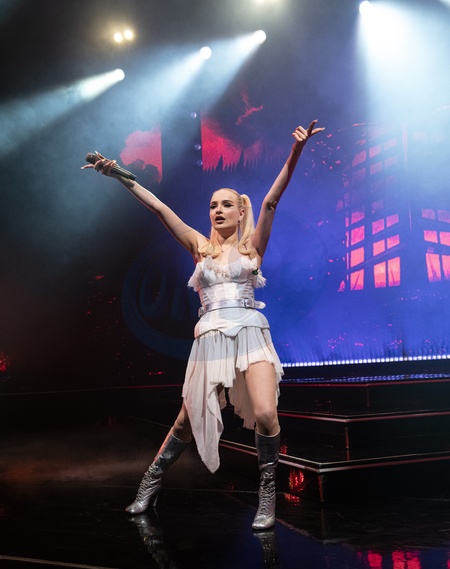Kim Petras performing live at Eventim Apollo, London on 19 February 2024Kim Petras is a German singer and songwriter based in LA.Between ‘16 and ‘20, she released music as an independent artist under her own imprint,but later signed to Republic Records.Petras's collaborative '22 single "Unholy" topped charts internationally, including the UK Singles Chart and the Billboard Hot 100, making her the first openly transgender solo artist to reach number one in the US.She's released two albums to date.This is her "Feed The Beast" world tour, Credit:Dafydd Owen / Avalon