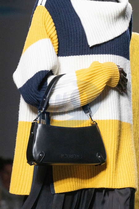 Iceberg - Models On Catwalk during Milan Fashion Week 2024 Ready To Wear For Fall Winter Fashion Show.CloseUp, Details, Accessories, Woman Women, Defile, Fashion Show Runway Collection, Pret A Porter, Modelwear, Modeschau Laufsteg Milano, Model, Fashion, Style, Look, Fashion Show, Runway, Catwalk, Credit:www.fashionpps.com / Avalon