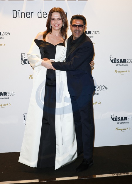 Juliette Binoche et Jamel Debbouze - Photocall de la 49ème édition de la cérémonie des César au Fouquet's à Paris Le 23 fevrier 2024 © Coadic Guirec / Bestimage