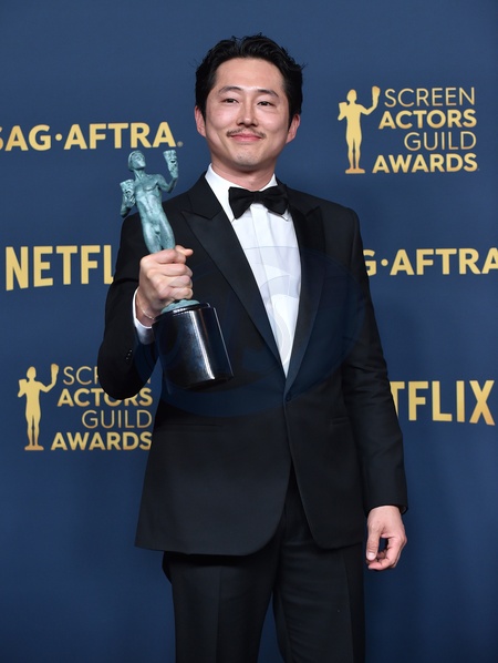 Steven Yeun in the press room at the 30th Annual SAG Awards at the Shrine Auditorium on February 24, 2024 in Los Angeles, CA.© OConnor-Arroyo/AFF-USA.com