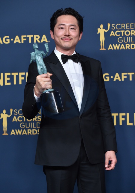 Steven Yeun in the press room at the 30th Annual SAG Awards at the Shrine Auditorium on February 24, 2024 in Los Angeles, CA.© OConnor-Arroyo/AFF-USA.com