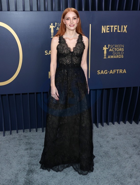 LOS ANGELES, CALIFORNIA, USA - FEBRUARY 24: Jessica Chastain wearing a custom Armani dress and DeBeers jewelry arrives at the 30th Annual Screen Actors Guild Awards held at the Shrine Auditorium and Expo Hall on February 24, 2024 in Los Angeles, California, United States., Credit:Xavier Collin / Avalon