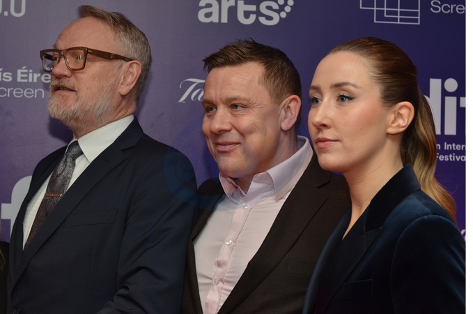 Jared Harris, producer Barry Castagnola and Erin Doherty at the premiere of The Reawakening at the Dublin Film Festival at the Lighthouse Cinema Dublin, Ireland Saturday 24th February 2024 -, Credit:Lisa Jayn / Avalon