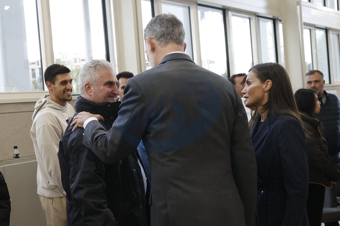 Le roi Felipe VI et la reine Letizia visitent la zone d'un complexe d'appartements de 14 étages après l'incendie qui l'a ravagé jeudi dernier à Valence le 26 février 2024. Pool King Felipe VI of Spain and Queen Letizia visit the area of a 14 floor apartment complex after fire tore through it last Thursday on February 26, 2024 in Valencia, Spain. The fire started on Thursday evening and killed 10 people. Pool