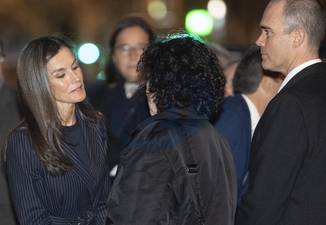 Le roi Felipe VI et la reine Letizia visitent la zone d'un complexe d'appartements de 14 étages après l'incendie qui l'a ravagé jeudi dernier à Valence le 26 février 2024. King Felipe VI of Spain and Queen Letizia visit the area of a 14 floor apartment complex after fire tore through it last Thursday on February 26, 2024 in Valencia, Spain. The fire started on Thursday evening and killed 10 people.