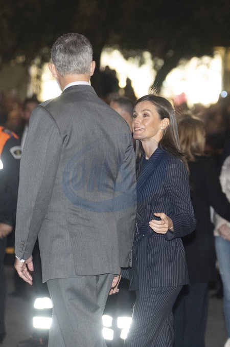 Le roi Felipe VI et la reine Letizia visitent la zone d'un complexe d'appartements de 14 étages après l'incendie qui l'a ravagé jeudi dernier à Valence le 26 février 2024. King Felipe VI of Spain and Queen Letizia visit the area of a 14 floor apartment complex after fire tore through it last Thursday on February 26, 2024 in Valencia, Spain. The fire started on Thursday evening and killed 10 people.