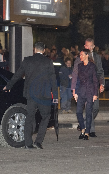 Le roi Felipe VI et la reine Letizia visitent la zone d'un complexe d'appartements de 14 étages après l'incendie qui l'a ravagé jeudi dernier à Valence le 26 février 2024. King Felipe VI of Spain and Queen Letizia visit the area of a 14 floor apartment complex after fire tore through it last Thursday on February 26, 2024 in Valencia, Spain. The fire started on Thursday evening and killed 10 people.