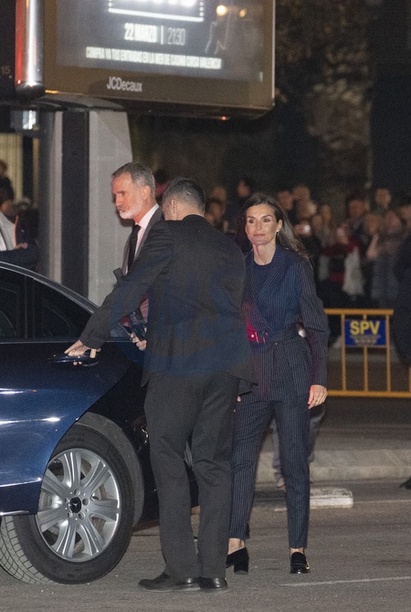 Le roi Felipe VI et la reine Letizia visitent la zone d'un complexe d'appartements de 14 étages après l'incendie qui l'a ravagé jeudi dernier à Valence le 26 février 2024. King Felipe VI of Spain and Queen Letizia visit the area of a 14 floor apartment complex after fire tore through it last Thursday on February 26, 2024 in Valencia, Spain. The fire started on Thursday evening and killed 10 people.