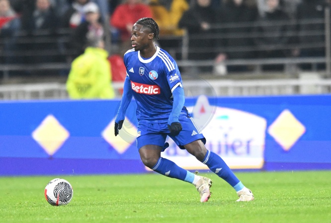Dilane Bakwa (strasbourg) - Match de quart de finale de la Coupe de France 2024 "Lyon - Strasbourg (0-0 tab 4-3)" au Groupama Stadium, le 27 février 2024. Quarter-final match of the Coupe de France 2024 "Lyon - Strasbourg (0-0 tab 4-3)" at Groupama Stadium, February 27, 2024.