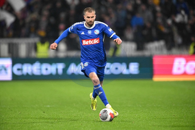 Lucas Perrin (strasbourg) - Match de quart de finale de la Coupe de France 2024 "Lyon - Strasbourg (0-0 tab 4-3)" au Groupama Stadium, le 27 février 2024. Quarter-final match of the Coupe de France 2024 "Lyon - Strasbourg (0-0 tab 4-3)" at Groupama Stadium, February 27, 2024.