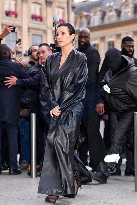 Kanye West (Ye) et sa femme Bianca Censori arrivent à l'hôtel Ritz lors de la semaine de la mode femme automne/hiver 2024-2025 (PFW)