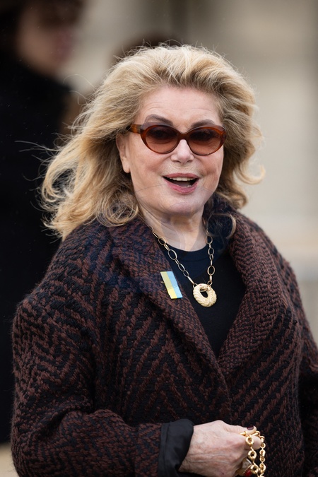 Catherine Deneuve - Les célébrités arrivent au défilé Loewe au château de de Vincennes lors de la mode femme automne / hiver 2024-2025 lors de la Fashion Week de Paris (PFW), le 1er mars 2024. Celebrities arrive at the Loewe fashion show at Esplanade Saint Louis during Fall/Winter 2024-2025 women's fashion during Paris Fashion Week (PFW), March 1, 2024.